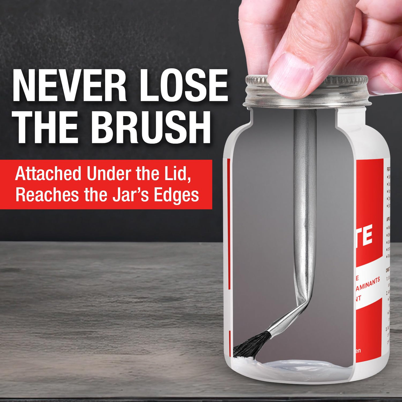 - Applicator Brush for Easy Use: The applicator brush, angled inside the lid, ensures precise application of the clear or milky-white silicone paste. Its bent design reaches jar edges effortlessly, minimizing waste and providing a smooth, even application for all your needs.