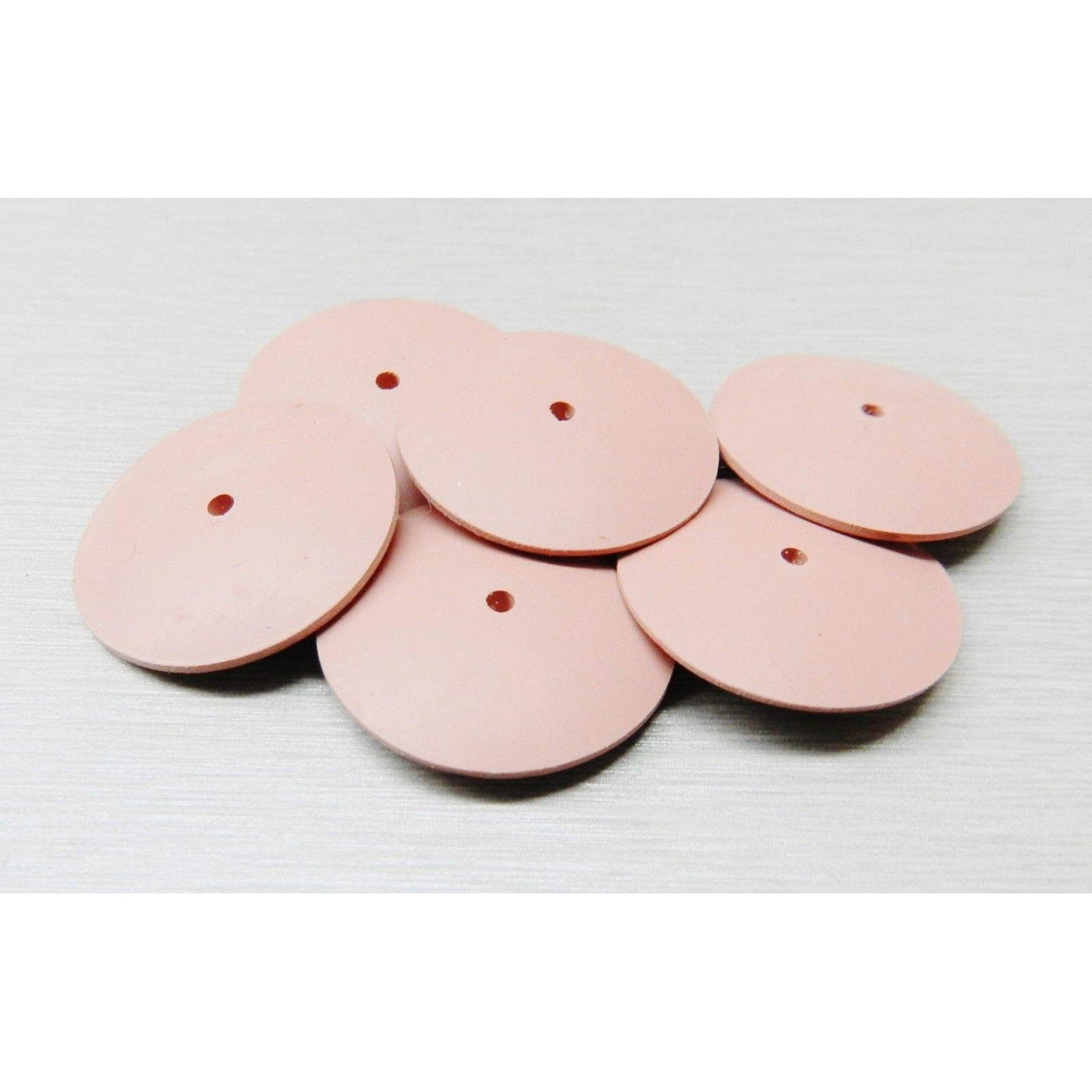 Details: Specifications: · Composition: Silicone Carbide · Grit: Extra fine (Final Step 4) · Color: Pink · Diameter Ø: 7/8" - 22mm · Thickness at Center: 5/32" - 4mm · Recommended RPM: 5000 to 10,000 · Hole Size: 1/16" - 1.5mm