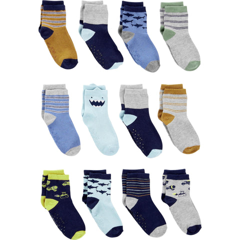 Keep your little one cozy and stylish from head to toe with our 12-Pack Baby Sock Set from Simple Joys by Carter’s. Designed with a playful mix of colors and adorable patterns, these socks are a perfect everyday essential to brighten up any outfit. Each pair features a comfortable, snug fit with a high ankle design to keep socks securely in place and prevent them from slipping off easily. Grippers on the soles add extra traction, helping your baby take safer steps as they start to explore. Soft materials ensure all-day comfort, while easy-care construction makes them machine washable for effortless cleanup. This 12-pack delivers the perfect balance of style, comfort, and practicality for babies on the move.