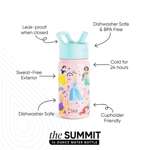 Simple Modern Kids Summit Water Bottle with Straw Lid | Disney Princess 14oz Stainless Steel Cup Insulated Tumbler for Girls, School | Princess Rainbows Sale