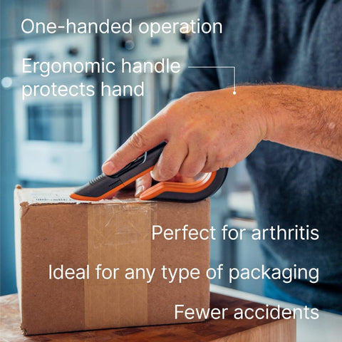 - ceramic blade only protrudes 1/2" - designed primarily for cutting corrugated packaging, foam, vinyl, boxes, cardboard, etc