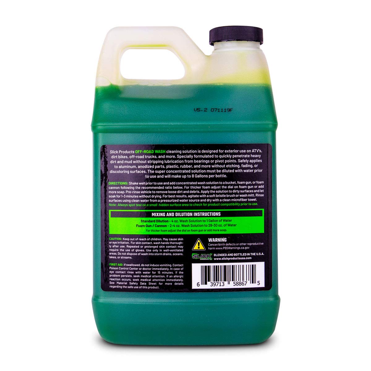 - PREMIUM WASH SOLUTION WITH PROFESSIONAL RESULTS : Slick Products offroad car care products are specially formulated with high-quality ingredients designed to offer users a faster, safer, and easier cleaning experience wash after wash. Our Super Concentrated Off-Road Wash is exactly what you need to maintain the life, look, and value of your vehicle for years to come.