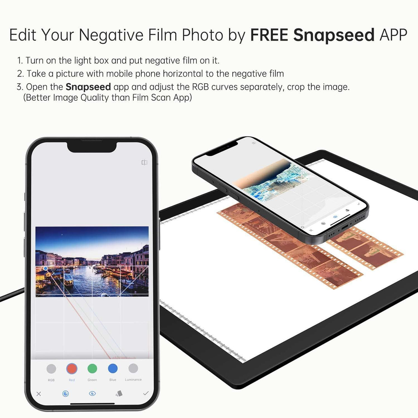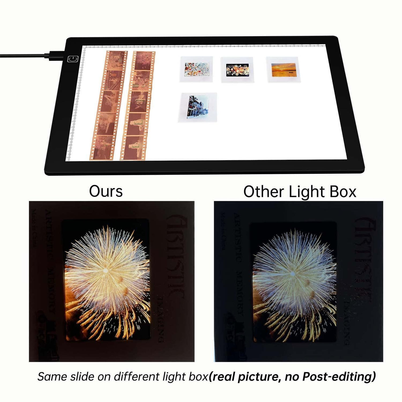 - Ideal Photographic Light Source: Color temperature: 5600K±200k, simulates natural white light to give negatives and slides a natural tone when viewing or photographing. Color Render Index>95Ra(measured data 98.6Ra), the high CRI helps restore true color of the original image. A perfect light tool for viewing and digitalizing negatives and slides with your phone and camera