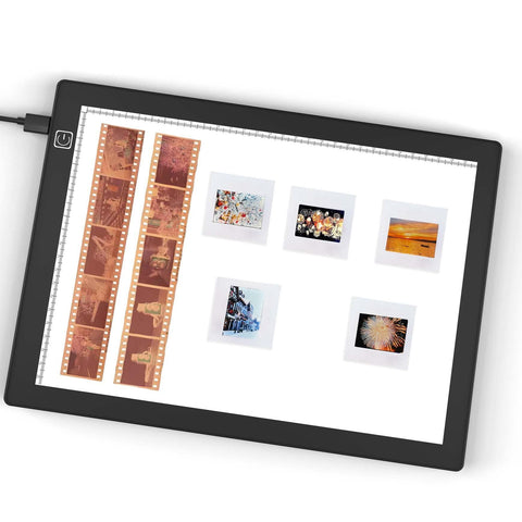 - Ultra-Thin with Large Active Area: This light pad is ONLY 0.26 inch thick. Active area 12”x8.3”, the large area makes it more efficiently for you to convert negatives, films and slides into images with phone/camera (up to 20 slides at one time).