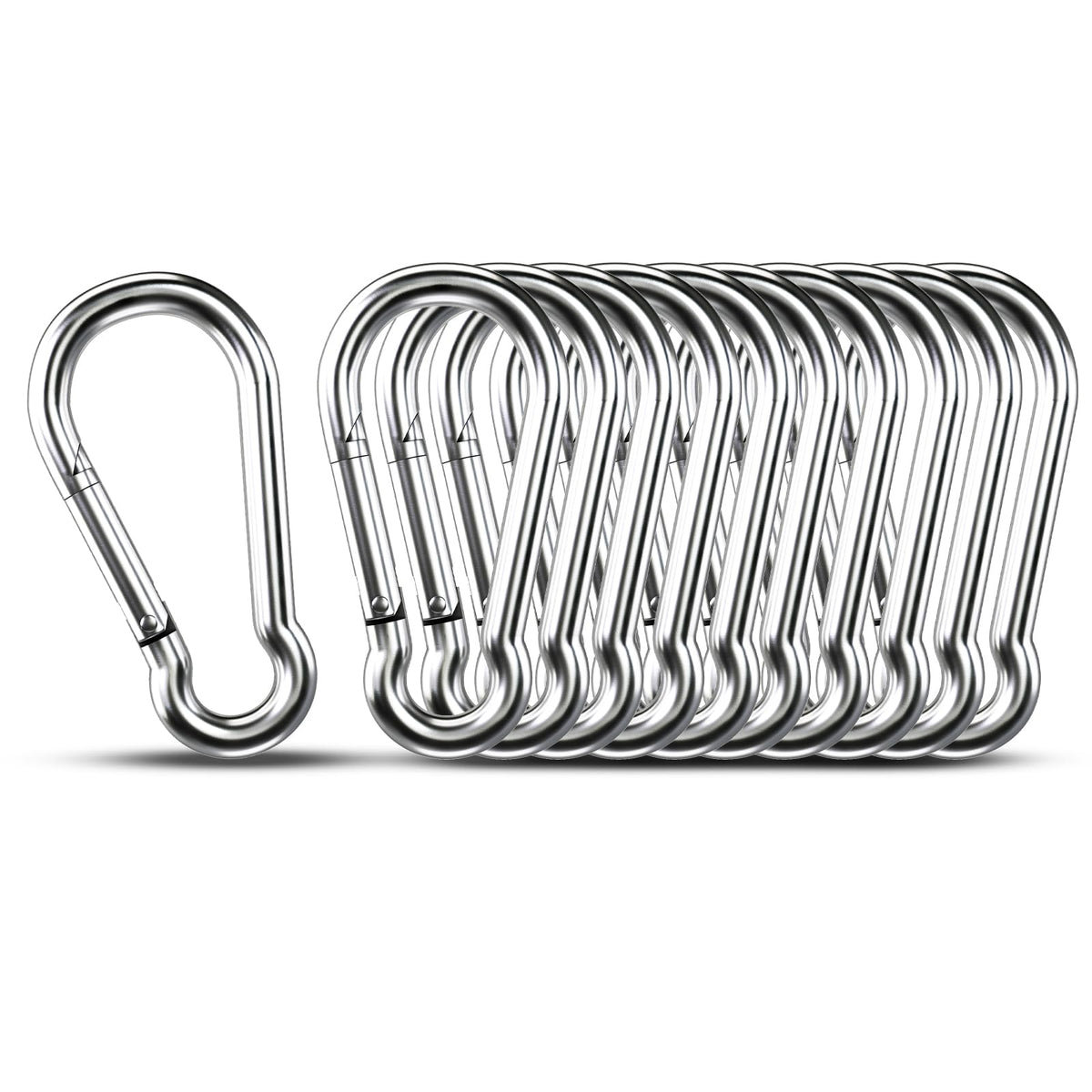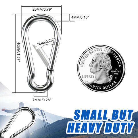 Small Carabiner Clip Hooks, 10pcs 1.57 inch Carabiners Heavy Duty, 304 Stainless Steel Spring Snap Hook Fits Camping Hiking, Metal Clips for Rope Chain Keychain Keys Rings Sale