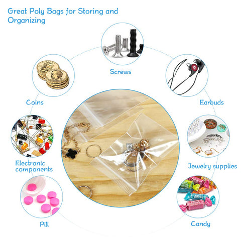 - MULTIPURPOSE MINI PLASTIC ZIP BAGS - The small plastic pouches with zip are nice for jewelry, earring, craft beads, small electronic parts like capacitors, board games token and pieces, stamps and coins collection etc