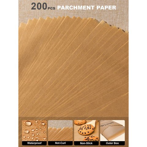 SMARTAKE 200 Pcs Parchment Paper Baking Sheets, 12x16 Inches Non-Stick Precut Baking Parchment, for Baking Grilling Steaming Bread Cup Cake Cookie and More (Unbleached) Sale