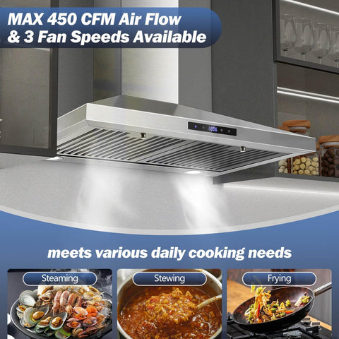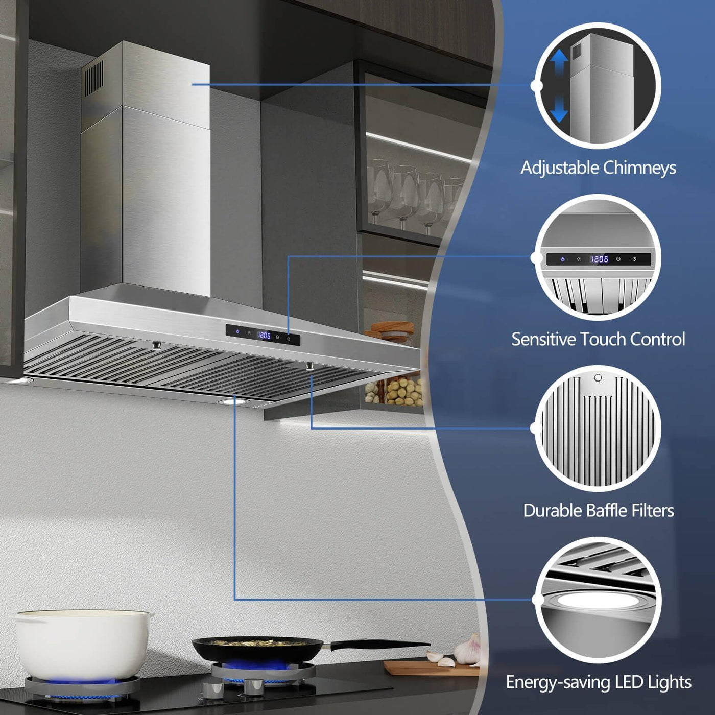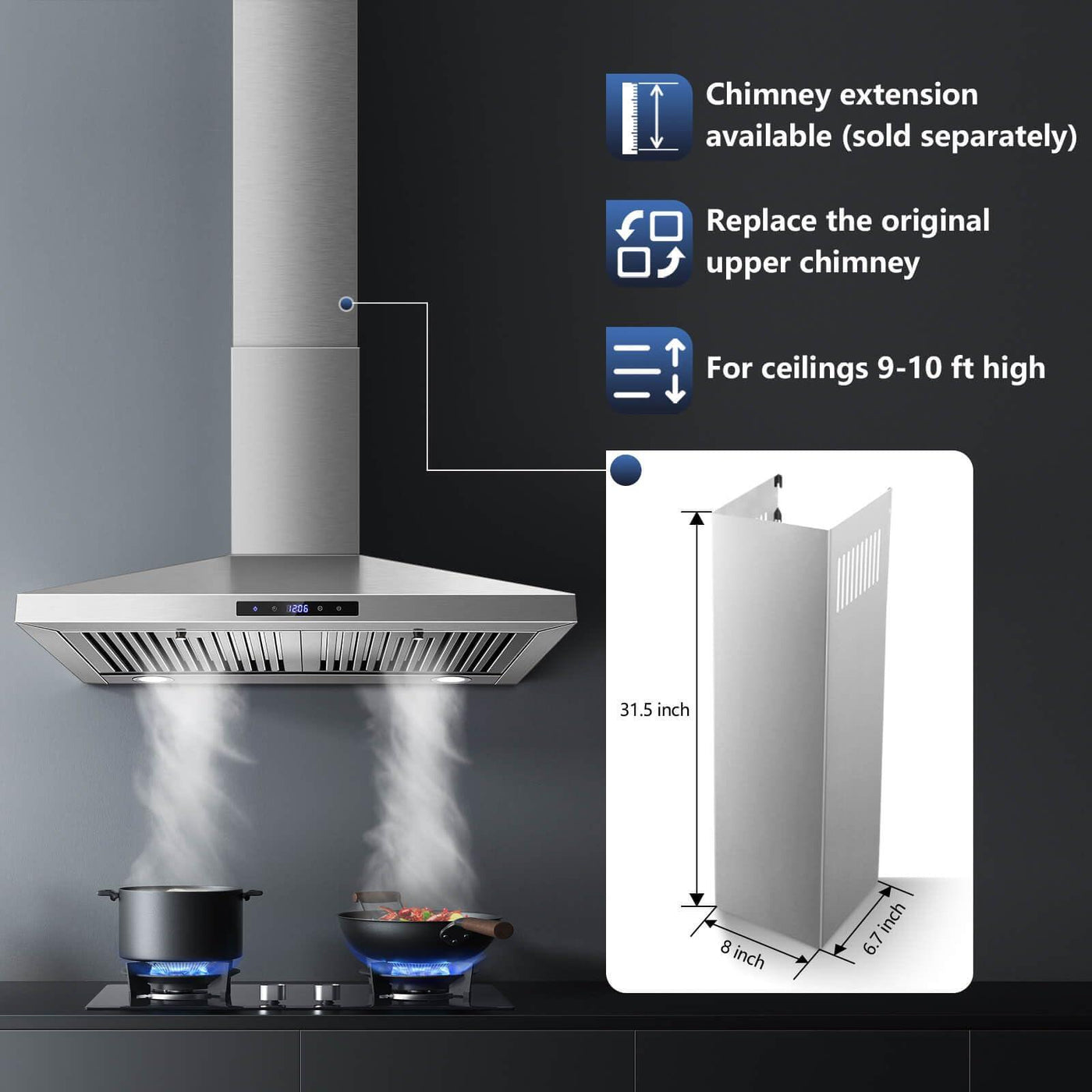 SNDOAS Range Hood 30 inches,Stainless Steel Wall Mount Range Hood,Vent Hood 30 inch w/Touch Control,Ducted/Ductless Convertible,Chimney-Style Over Stove Vent Hood,Kitchen Hood,Baffle Filters Sale