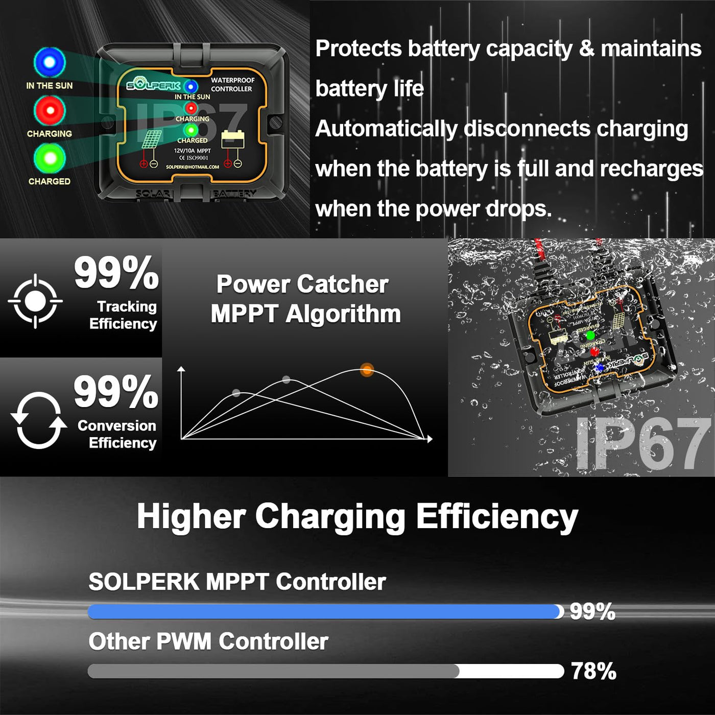 SOLPERK Solar Panel Kit 20W 12V, Solar Battery Trickle Charger Maintainer + Upgrade Controller + Adjustable Mount Bracket for Boat Car RV Motorcycle Marine Automotive