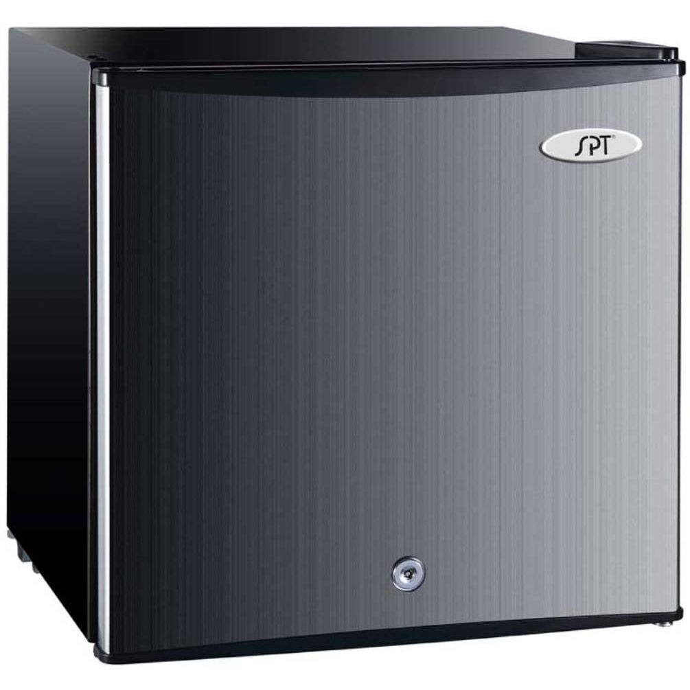 Compact, flush back design offers 1.1 cu.ft. of storage, perfect for those with limited space. Features adjustable thermostat, reversible door and removable wire shelf.