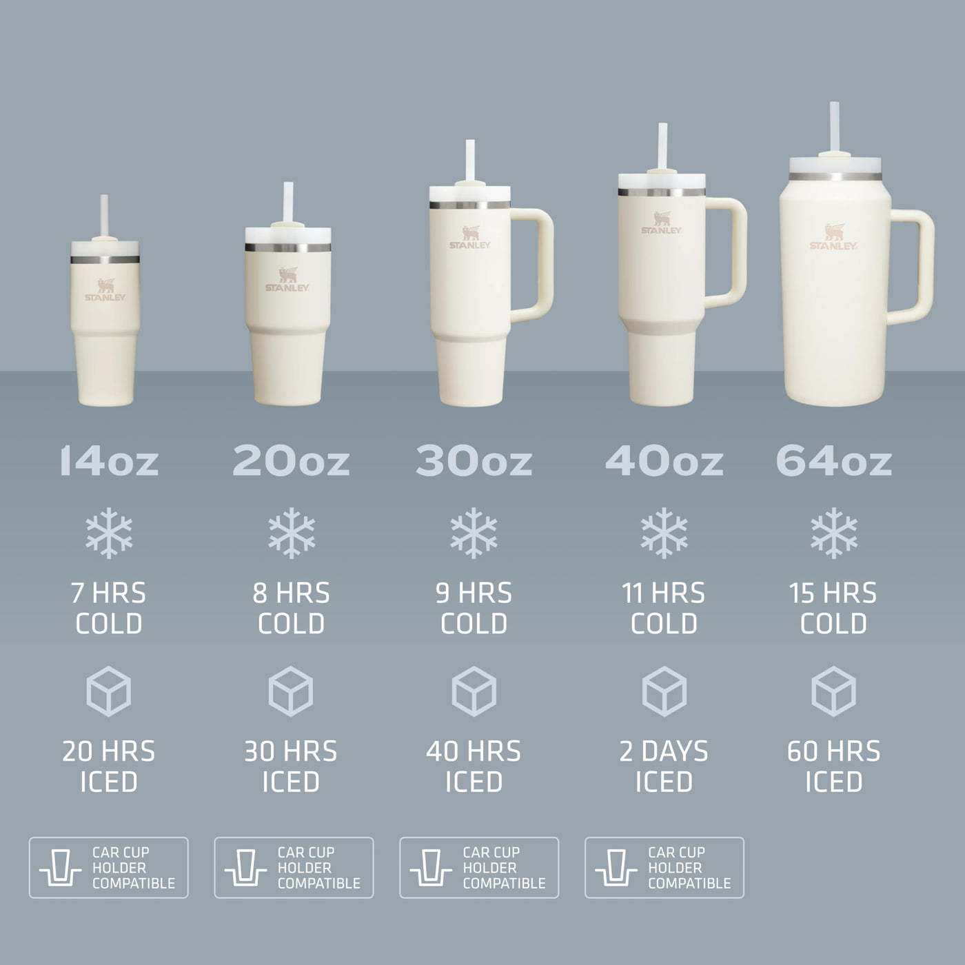 - YOUR DREAM TUMBLER: Whichever way your day flows, the H2.0 FlowState tumbler keeps you refreshed with fewer refills. Double wall vacuum insulation means drinks stay cold, iced or hot for hours. Choose between our 14oz, 20oz, 30oz,40oz and 64oz options depending on your hydration needs. The narrow base on all sizes (except 64oz) fits just about any car cup holder, keeping it right by your side.