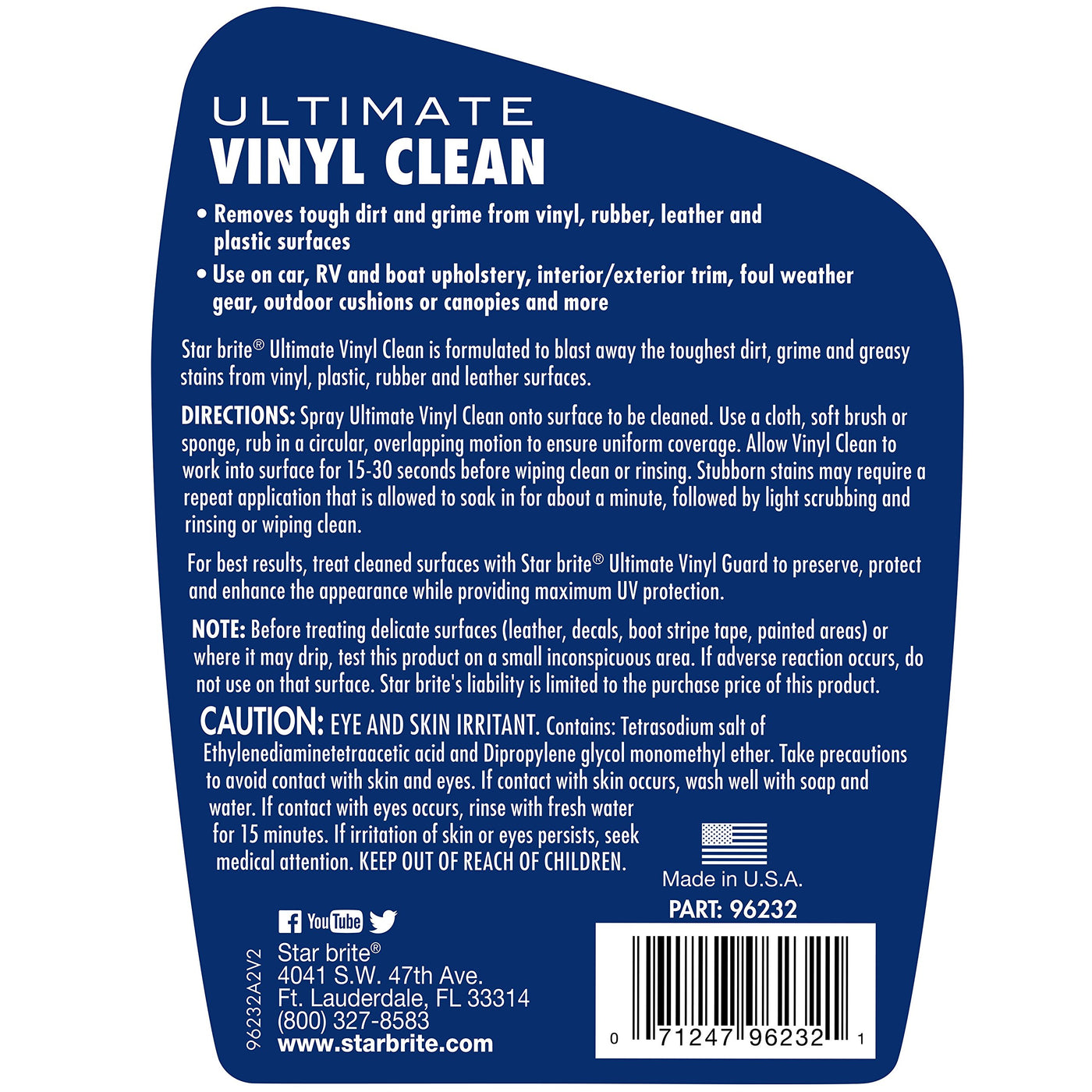 - POWERFUL FORMULA: Star brite Ultimate Vinyl Cleaner blasts away the toughest dirt, grime, and greasy stains from vinyl, plastic, rubber, and leather surfaces