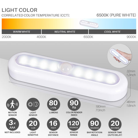 STAR-SPANGLED 3 Pack 7” Motion Sensor Lights Indoor Battery Operated, Stick on LED Light for Closet, Stairs, Under Cabinet, Cool White Sale