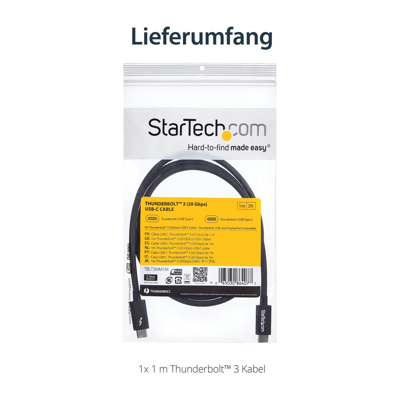 StarTech.com 1m (3.3ft) Passive Thunderbolt 3 Cable, 20Gbps, 100W PD, 4K Video, Thunderbolt Cable, Compatible with USB4/DP Alt Mode, Thunderbolt 4, USB 3.2/Type-C (TBLT3MM1M) Sale