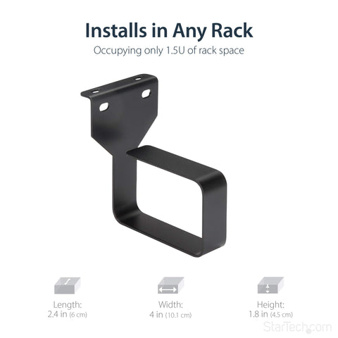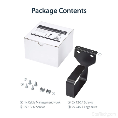 Details: Features : D-ring - Black - 1 Pack - 1.5U Rack Height - Steel - TAA Compliant, Add an internal or external facing cable management hook for strain relief and organization. The CMHOOKMW Multi-Directional Vertical Cable Management D-ring lets you add an internal or external facing cable hook to your server rack or cabinet, to provide an organized channel for cables. This TAA compliant product adheres to the requirements of the US Federal Trade Agreements Act (TAA), allowing government GSA Schedule purchases. Constructed of high-quality steel, the cable management ring measures 2.4 x 3.9in (6 x 10cm). For flexible mounting options, the cable ring features a right-angled mounting bracket with 2 sets of mounting holes, enabling you to face the D-ring in the direction that best fits your application. Providing strain relief for attached cables, multiple cable rings can be attached to your rack where you need them for a versatile cable management solution. Backed by a StarTech.com 2-year warranty