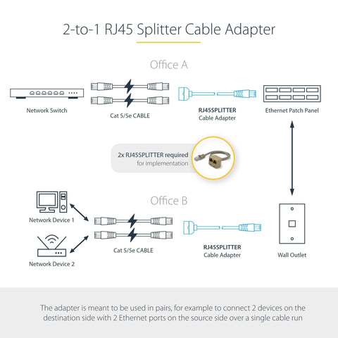 StarTech.com 2-to-1 RJ45 10/100 Mbps Splitter/Combiner - One Adapter Required at Each End of the Connection (RJ45SPLITTER) Sale