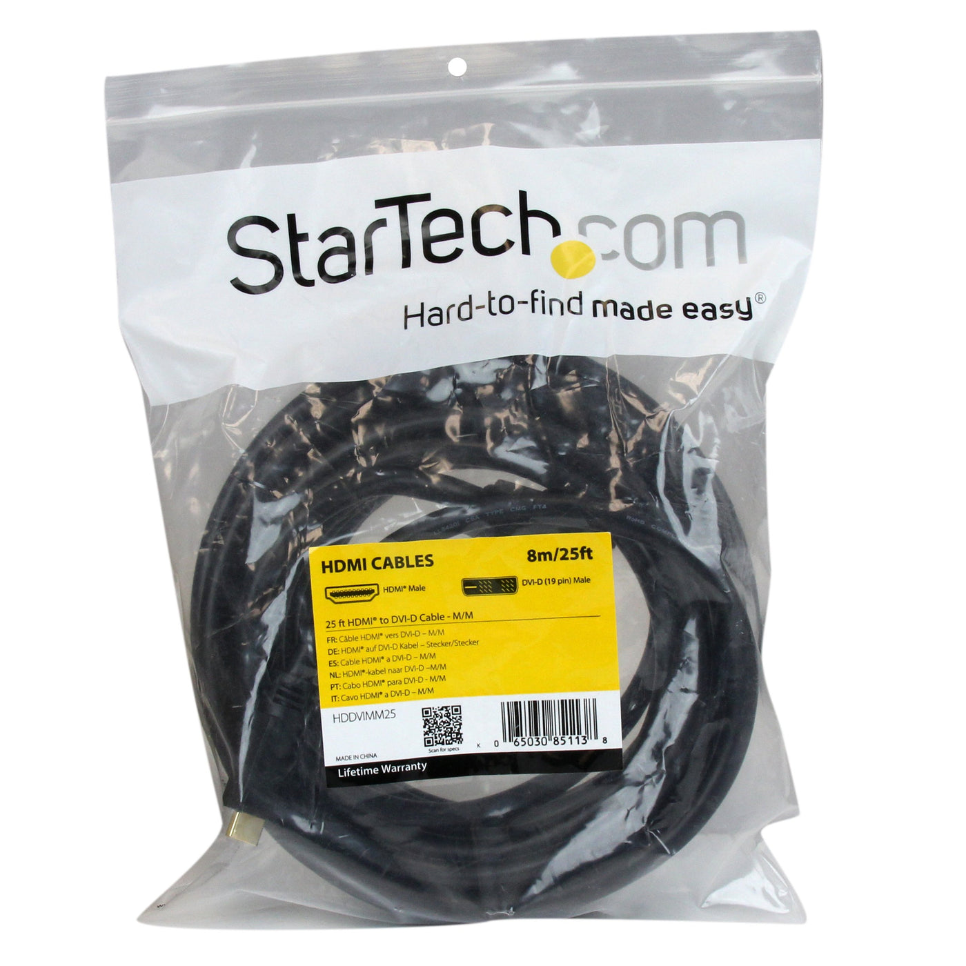 Details: StarTech.com 25 ft HDMI to DVI-D Cable - HDMI to DVI Adapter / Converter Cable - 1x DVI-D Male, 1x HDMI Male - Black, 25 feet