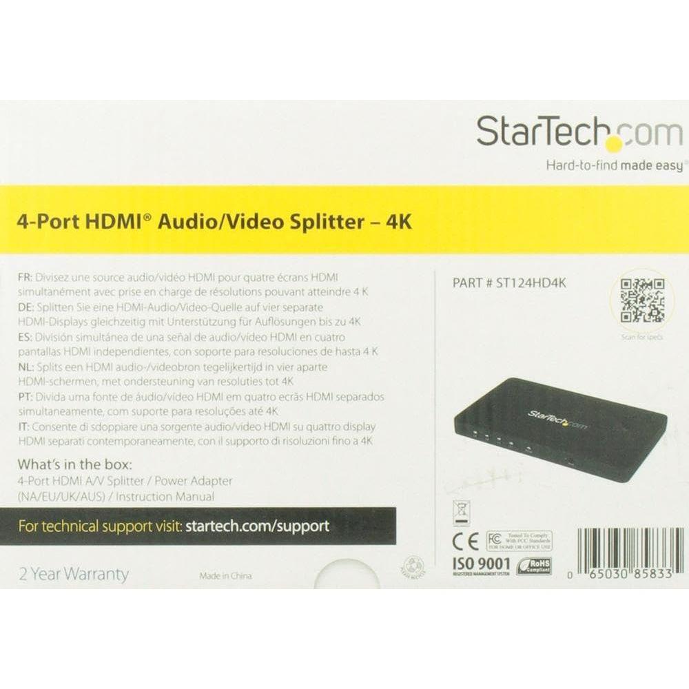 Details: The ST124HD4K 4-port 4K HDMI splitter lets you share four HDMI displays or projectors with an HDMI-enabled audio / video source devices, such as a computer, Blu-ray player or cable TV set-top box.