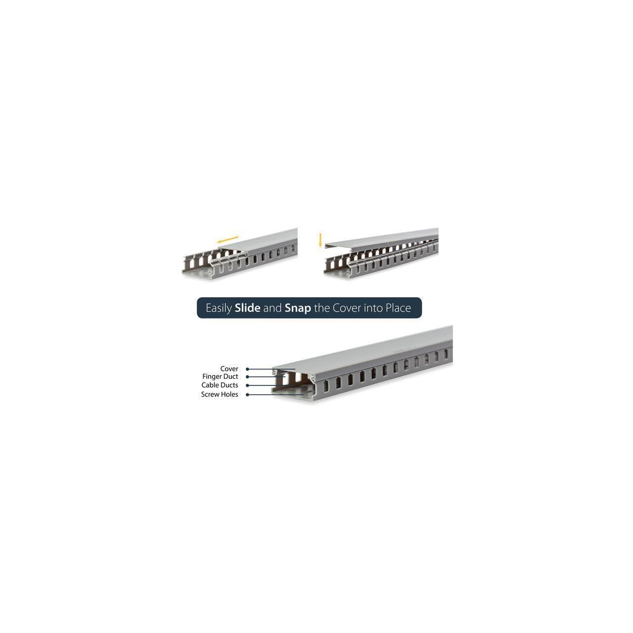 StarTech.com 5.6ft Server Rack Cable Management - Customizable 2in x 1in Open Slot Network & Data Finger Duct Wire Raceway Organizer w/ Cover, TAA (AD105X1)