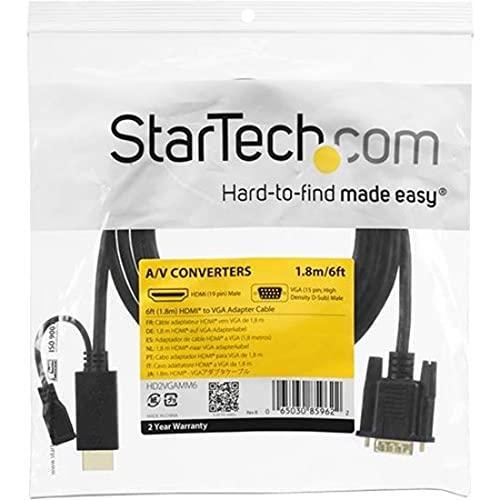Details: Reduce clutter with short 6ft adapter cable Avoid the hassle of additional adapters or cables with a built in cable connecting an HDMI video source directly to a VGA monitor or projector Save upgrade cost by connecting your HDMI computer to a VGA monitor or projector Supports video resolutions up to 1920x1200 / 1080p Active digital HDMI to analog VGA conversion Adapter and cable in one, with 1x male HDMI connector and 1x male VGA connector Plug-and-play installation The HD2VGAMM6 6ft HDMI® to VGA converter cable lets you connect your HDMI equipped Chromebook™, laptop or desktop to a VGA monitor or projector, with no additional adapters or cables required. The converter cable saves you the hassle of combining an HDMI to VGA adapter with a bulky VGA cable by providing an end-to-end solution for connecting your digital HDMI computer to your VGA monitor or projector. Unlike most HDMI to VGA adapters which require a power outlet to convert the video signal, the HD2VGAMM6 doesn’t need external power in most installations. To work with Mac computers where extra power is needed, the HD2VGAMM6 features an optional integrated USB power source (USB cable not included), which makes connecting a display to your desktop or workstation that much easier, if additional power is required. In the past, converting digital HDMI to analog VGA was a difficult and expensive task. Now, you can avoid upgrade costs by connecting your HDMI video source to your existing VGA monitor or projector using the HD2VGAMM6. Plus, because the adapter cable supports video resolutions up to 1920x1200 or 1080p, you can rest assured you can use your existing VGA display while maintaining high-definition video quality. The HD2VGAMM6 converter cable delivers a precise 6ft connection that eliminates the clutter of excess cable length and ensures a tidy, professional installation. For longer shorter installations, we offer a 3 ft HDMI to VGA cable (HD2VGAMM3), and longer installations we offer a 10 ft HDMI to VGA cable (HD2VGAMM10), enabling you to choose the right cable length for your installation needs. Please note: Digitally encrypted content from the HDMI video source will not be displayed. The HD2VGAMM6 is backed by a 3-year StarTech.com warranty and free lifetime technical support. Connect an HDMI computer to your classroom or boardroom projector Use in your boardroom or workstation for installation requiring 6 feet of cable Install in your at home work station to make your HDMI computer compatible with your VGA monitor Reduce clutter in your classroom or workstation with a precise 6 foot cable connecting your HDMI computer to your VGA display Hassle-free installation with cable-style adapter enabling you to connect your HDMI source directly to a VGA display with no additional video cable required Save upgrade costs by connecting your HDMI computer to an existing VGA monitor, projector or television Specifications Warranty Information Warranty 3 Years Connector(s) 1 - Connector Type(s) USB Micro-B (5 pin) 1 - Connector A HDMI (19 pin) 1 - Connector B VGA (15 pin, High Density D-Sub) Environmental Operating Temperature 0°C to 60°C (32°F to 140°F) Storage Temperature -10°C to 70°C (14°F to 158°F) Humidity 40%-85%RH Hardware Active or Passive Adapter Active AV Input HDMI AV Output VGA Audio No Chipset ID Chrontel - 7101A Packaging Information Package Height 0.6 in [15.0 mm] Package Length 8.8 in [22.3 cm] Shipping (Package) Weight 4.6 oz [130.0 g] Package Width 7.8 in [19.8 cm] Performance Maximum Cable Length 72.0 in [1828.8 mm] Maximum Analog Resolutions 1920 x 1200 Maximum Digital Resolutions PC resolutions up to 1920 x 1200 @ 60 Hz MTBF 1,381,510 hours Physical Characteristics Weight of Product 4.0 oz [112.8 g] Color Black Cable Length 6.0 ft [1.8 m] Product Length 6.1 ft [1.9 m] Product Width 1.6 in [40.0 mm] Product Height 0.6 in [1.5 cm] Power Power Source USB-Powered What's in the Box 1 - Included in Package HDMI to VGA adapter cable