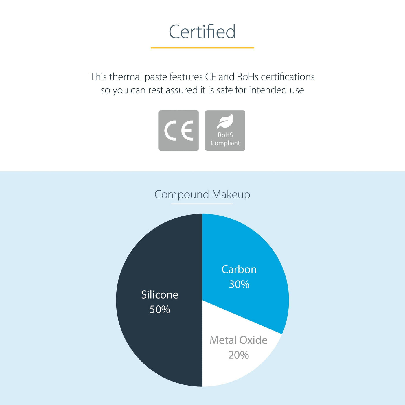 - SAFETY AND RELIABILITY: This thermal paste is CE and RoHs certified for guaranteed safety and reliability; The compound contains 60% metal oxide and offers better thermal conductivity than standard heat pastes - Best suited for CPUs with TDP of up to 65W