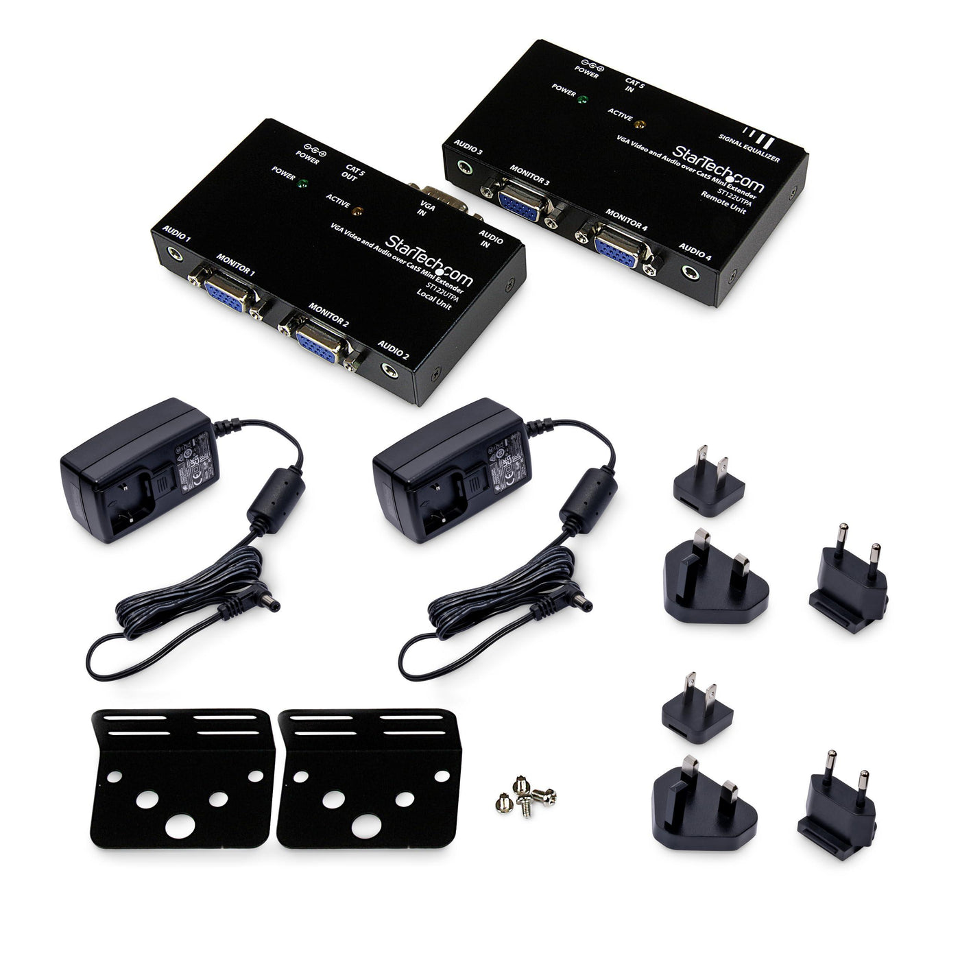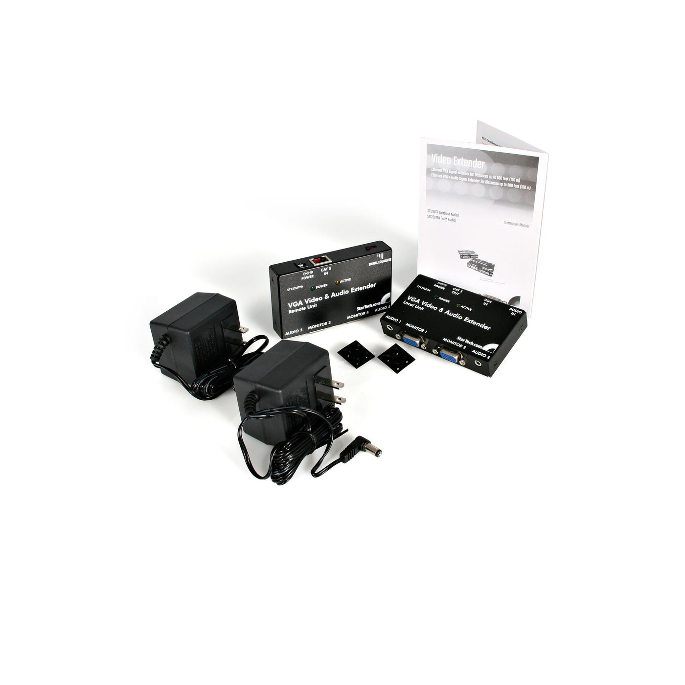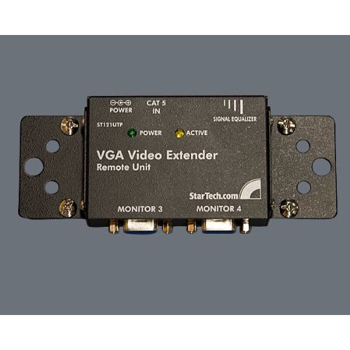 Details: The ST122UTPA VGA Video Extender over Cat 5 with Audio allows up to 4 (2 local and 2 remote) monitors to be connected to a single PC. The video signal and corresponding audio are sent to the remote unit over standard 4 pair Category 5 or better (Cat 5e recommended) UTP cable, supporting extended video distances of up to 150m / 500ft. The VGA video and audio extender includes a local transmitter and a remote receiver, providing an out-of-the box solution that's perfect for point to point digital signage applications that require audio. To simplify installation, this kit also includes a mounting bracket for the ST122UTPA receiver to install onto walls, desks or cabinets for a tidy setup. This product is TAA compliant and backed by a Startech..