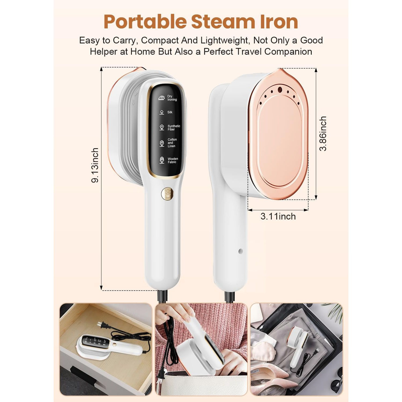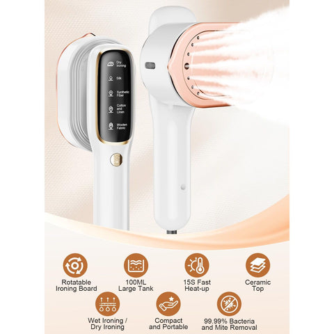 Steamer for Clothes,2-in-1Handheld Ironing Machine,Professional 5 Modes,15s Fast Heat-up, Fabric Wrinkle Remover,100ml Water Tank,Lightweight Steam Iron for Travel & Home College Dorm-120V Only Sale