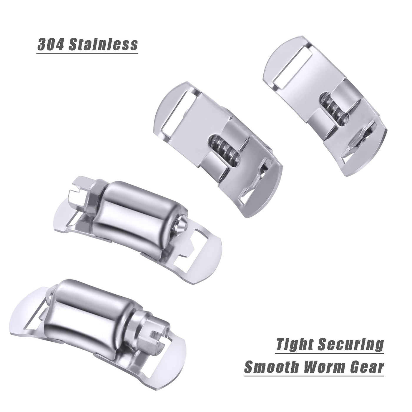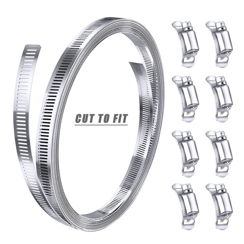 - Hose Clamps Stainless Steel: 12 FT strap and 8 PCS fasteners are all made of high quality 304 stainless steel, NOT 201 SS. These worm gear clamps will last forever, reusable, anti-rust and anti-corrosive, very suitable for outdoor use!