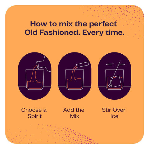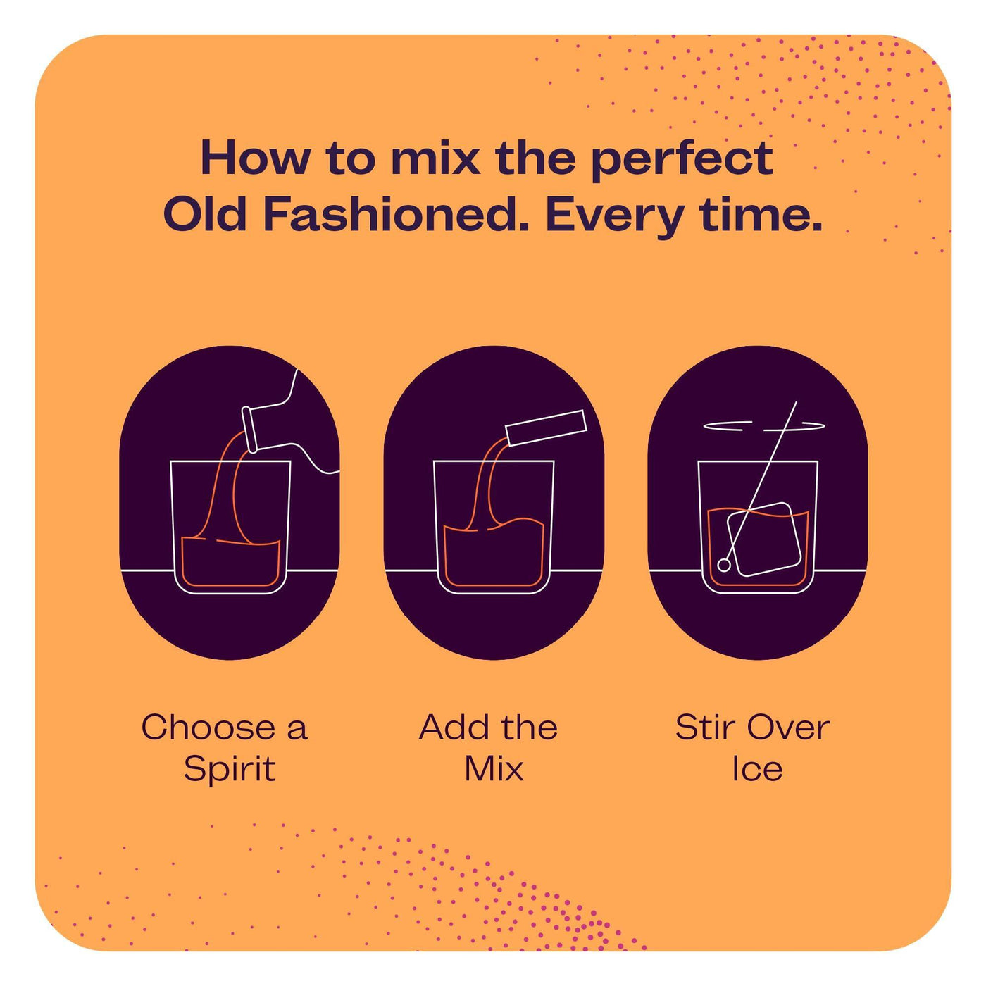 - Easy – Just add one sachet to two ounces of your favorite bourbon, rye, or whiskey, then add ice and stir for 30-seconds. Enjoy a perfect Old Fashioned Cocktail in seconds, anywhere and anytime