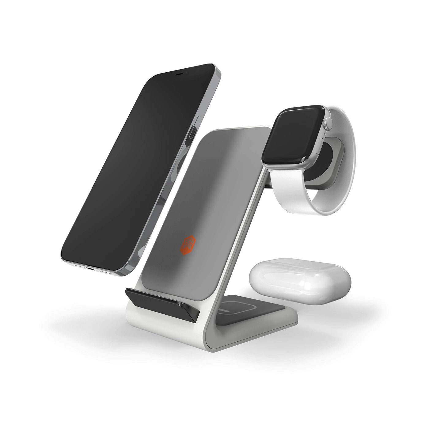 STM ChargeTree Swing 3-in-1 Wireless Charging Station for iPhone/Samsung/Android (15W/7.5W), AirPods (5W), Apple Watch (3W). Qi-Certified Stand, White Sale