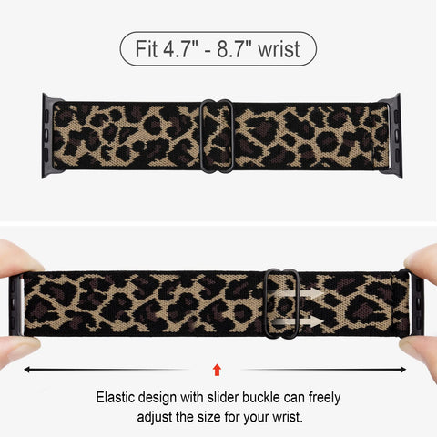 - Elastic & Adjustable -- These iWatch bands for women men are designed with slim stainless steel slider buckle, allow you to adjust extremely easily the size of the loop as you wish, snugly fit your wrist comfortably without constriction. Fit for 4.3"-8.7" wrist