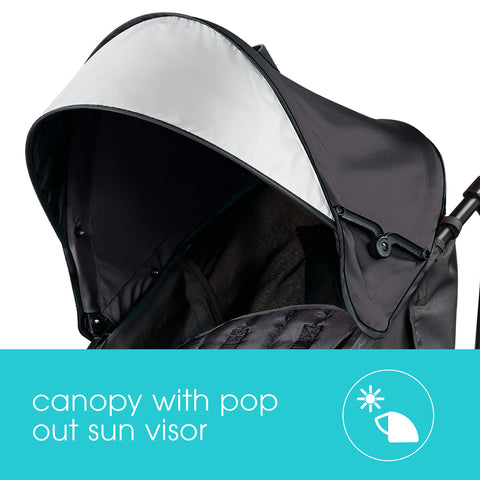 - COMPACT FOLD – The easy compact fold with carry strap and auto lock makes it simple to store this lightweight umbrella stroller and bring it with you to go! Plus, the adjustable and removable canopy with flip out sun visor is perfect for sunny days.