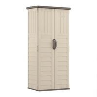 Suncast Vertical Outdoor Storage Shed with Reinforced Floor, Lockable Double Doors, All-Weather Construction, and Multi-Wall Panels, Vanilla, Made in the USA
