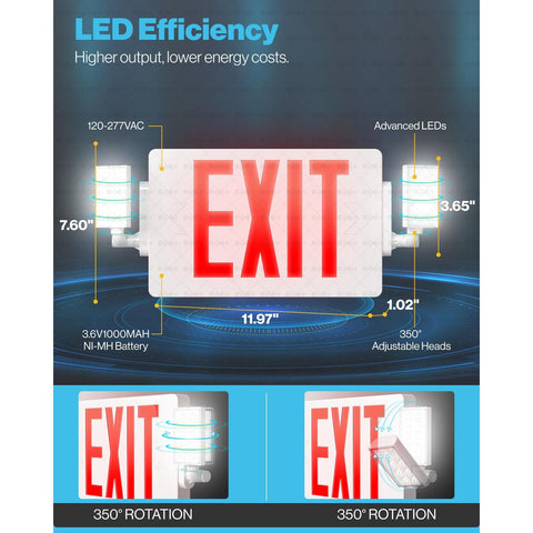 - SAFETY FIRST - The exit sign has bright adjustable lights on each side of the sign for maximum visibility. US standard red 6" high letters with 3/4" stroke are visible from up to 100 feet away. In case of a power outage, the backup battery automatically illuminates (90 minutes) the fixture and light the way to safety.