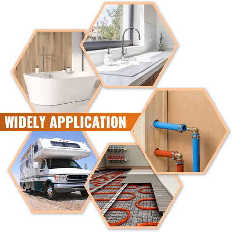 - 【Applications】: This brass crimp 1/2 inch Pex fittings Set can be used only for PEX B pipes in plumbing jobs. Great for hot or cold water distribution and and hydronic heating systems in your home, in warehouse or in RV. But NOT UPONOR/Wirsbo EXPANSION SYSTEM & PB TUBE.