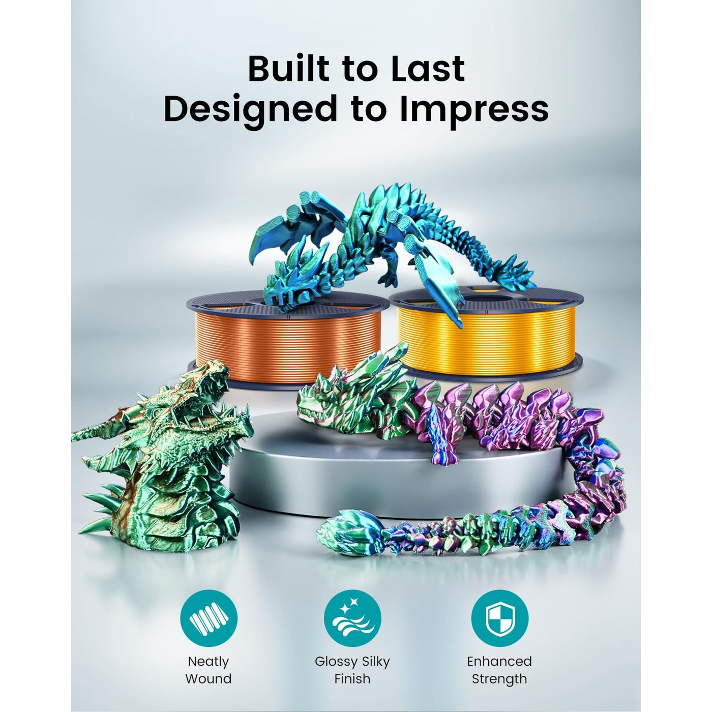 - Glossy Silk Finish: This silk PLA+ filament delivers a natural glossy, satin-like finish straight from your 3D printer—no need for post-processing. Perfect for artistic models, decorative pieces, and any project where appearance matters.