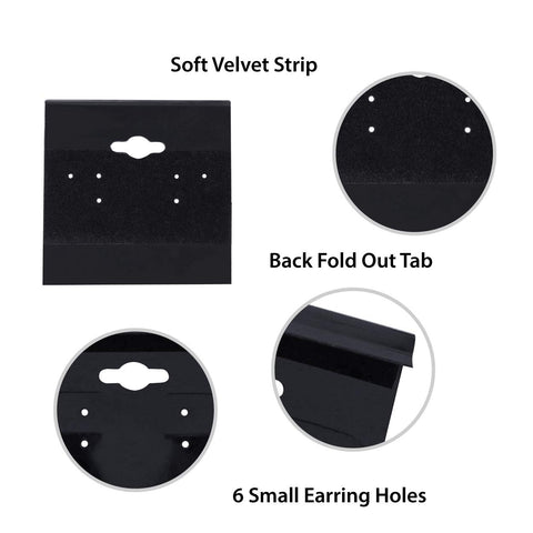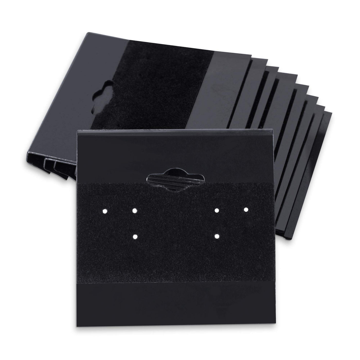 - This package contains 100 black plastic earring cards each measuring 2" Wide x 2" Length inches. You will always have plenty of these handy for all your DIY creations while easily organizing them.