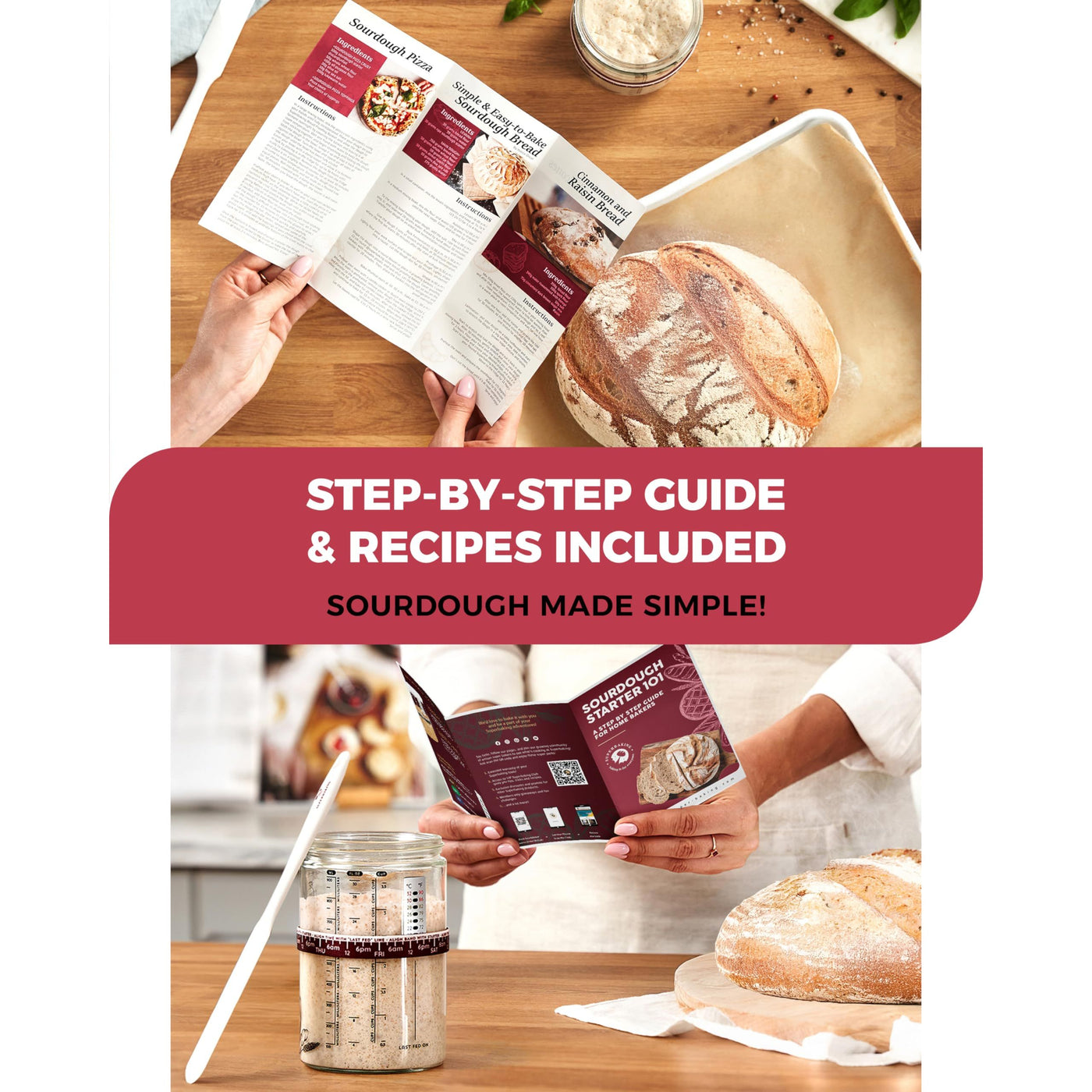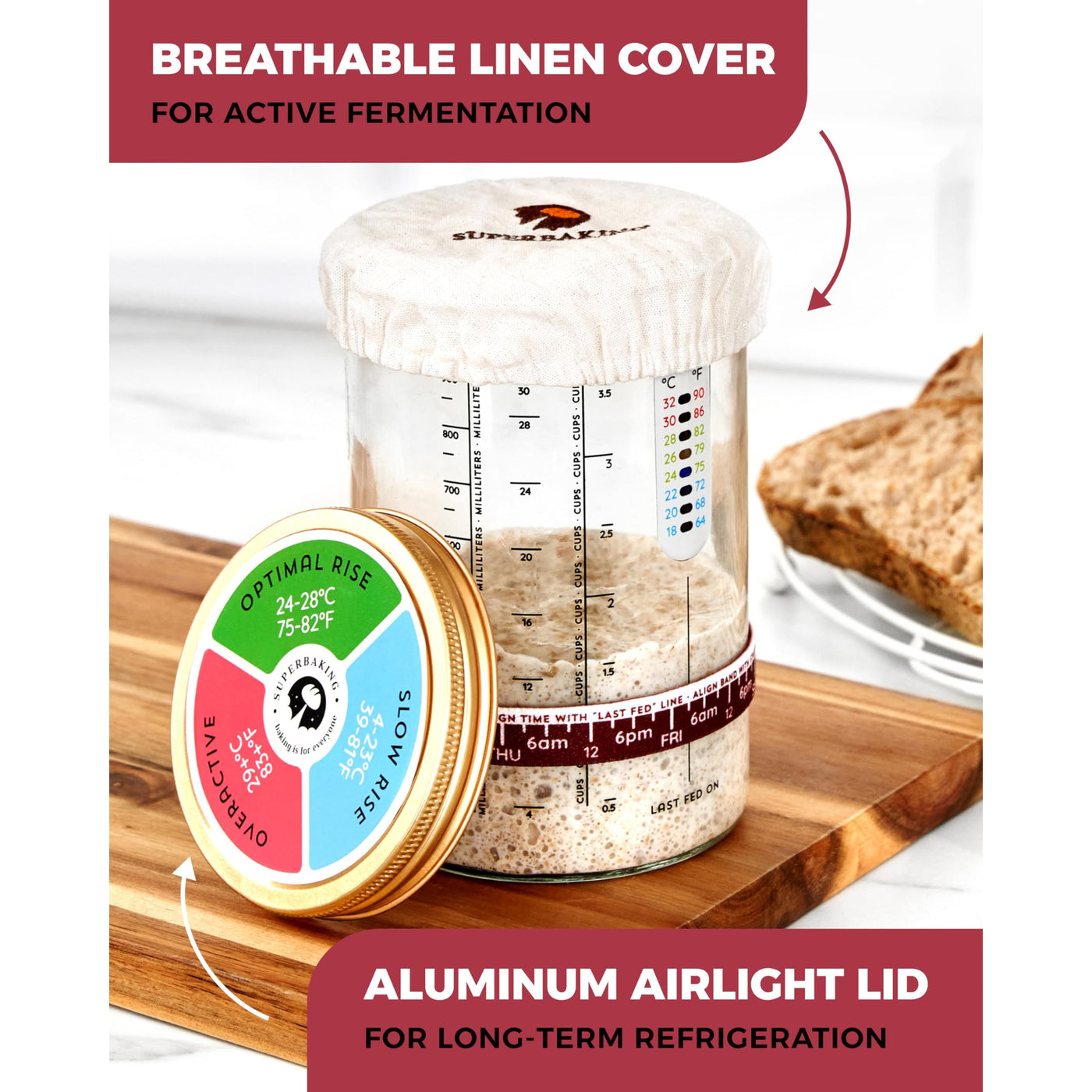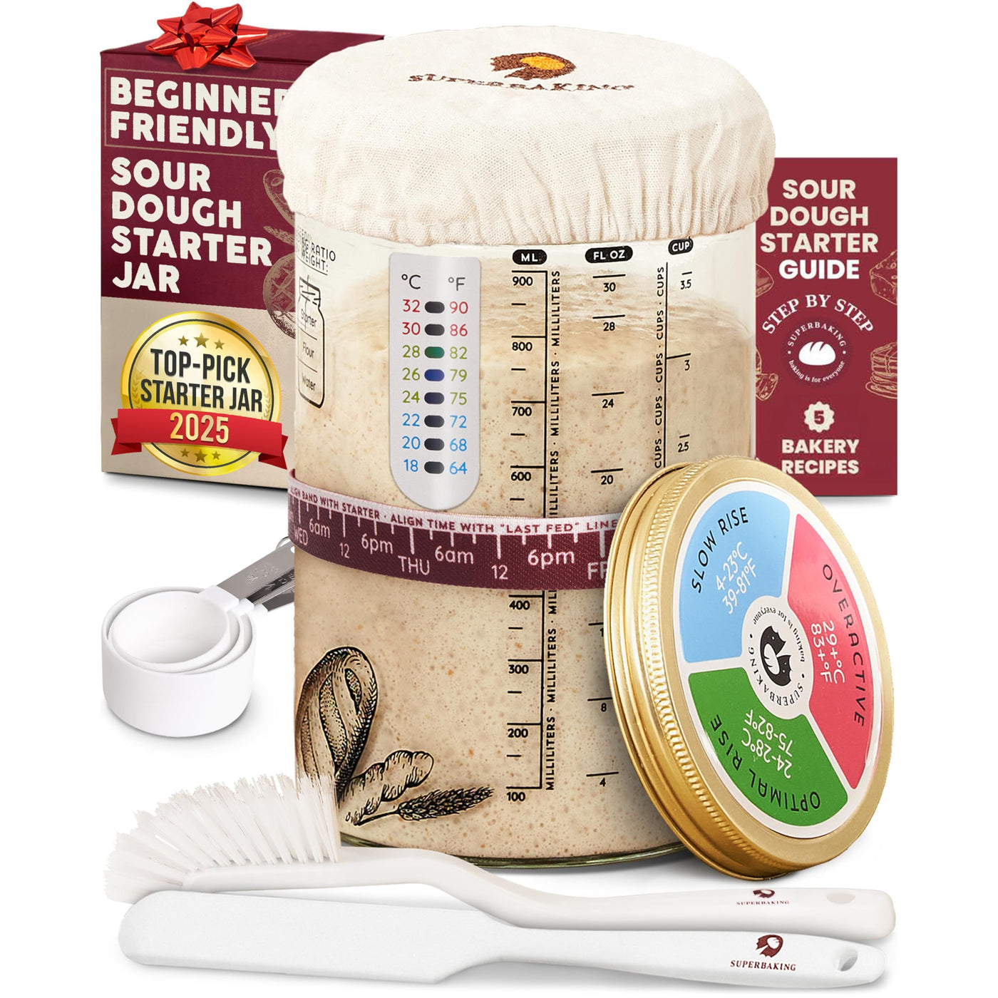 Superbaking Sourdough Starter Jar, Beginner Sourdough Starter Kit, 34oz Wide Mouth Sour Dough Glass Jar with Guides & Recipes, Sourdough Bread Baking Supplies, Sourdough Container Crock