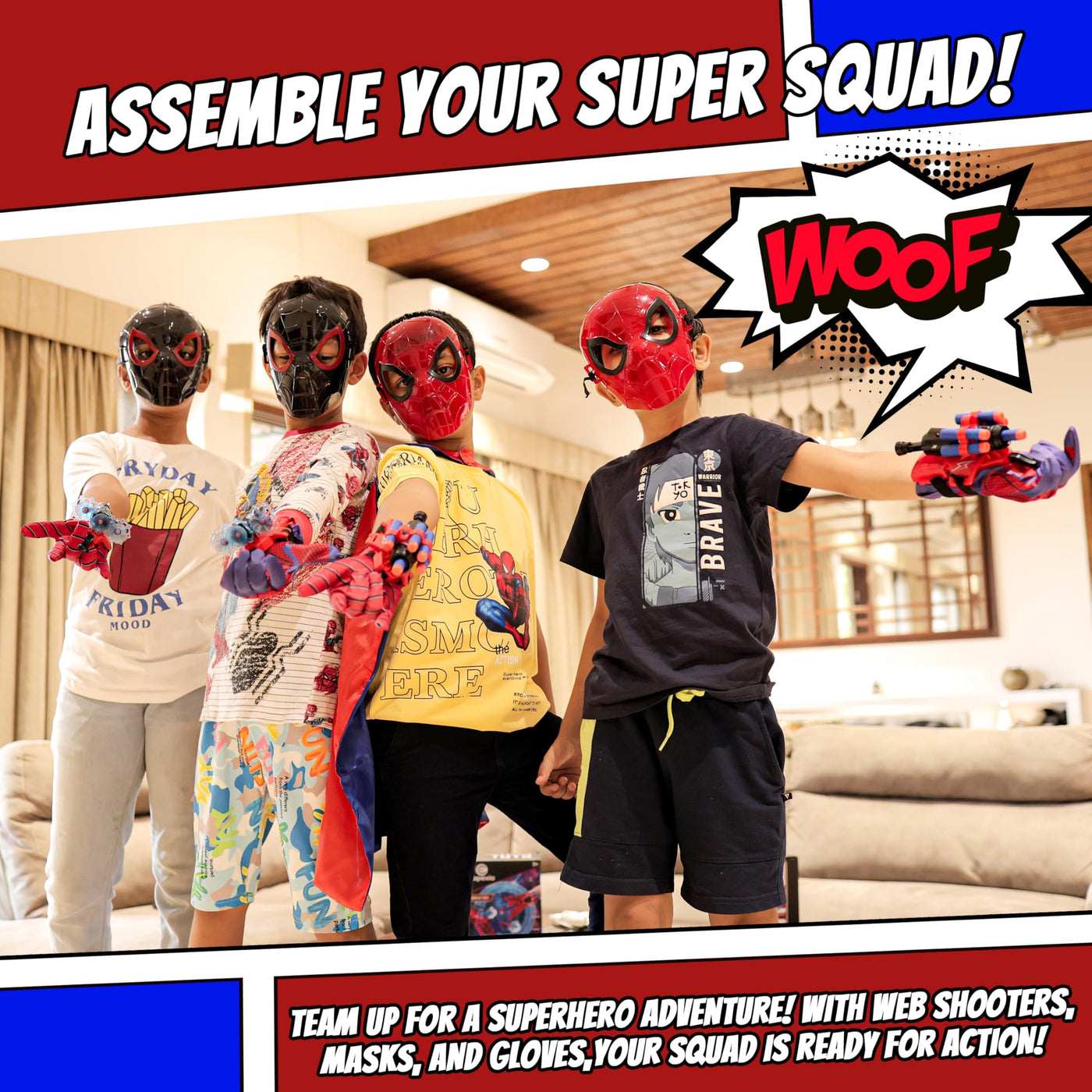 Superhero Web-Slinging Toy Set – 7-in-1 Superhero Set Includes 2 Web Shooters, 2 Hero Masks, 2 Gloves, and 1 Cape – Ideal for Indoor and Outdoor Costume Role-Playing, Imaginative Play for Kids Ages 3+