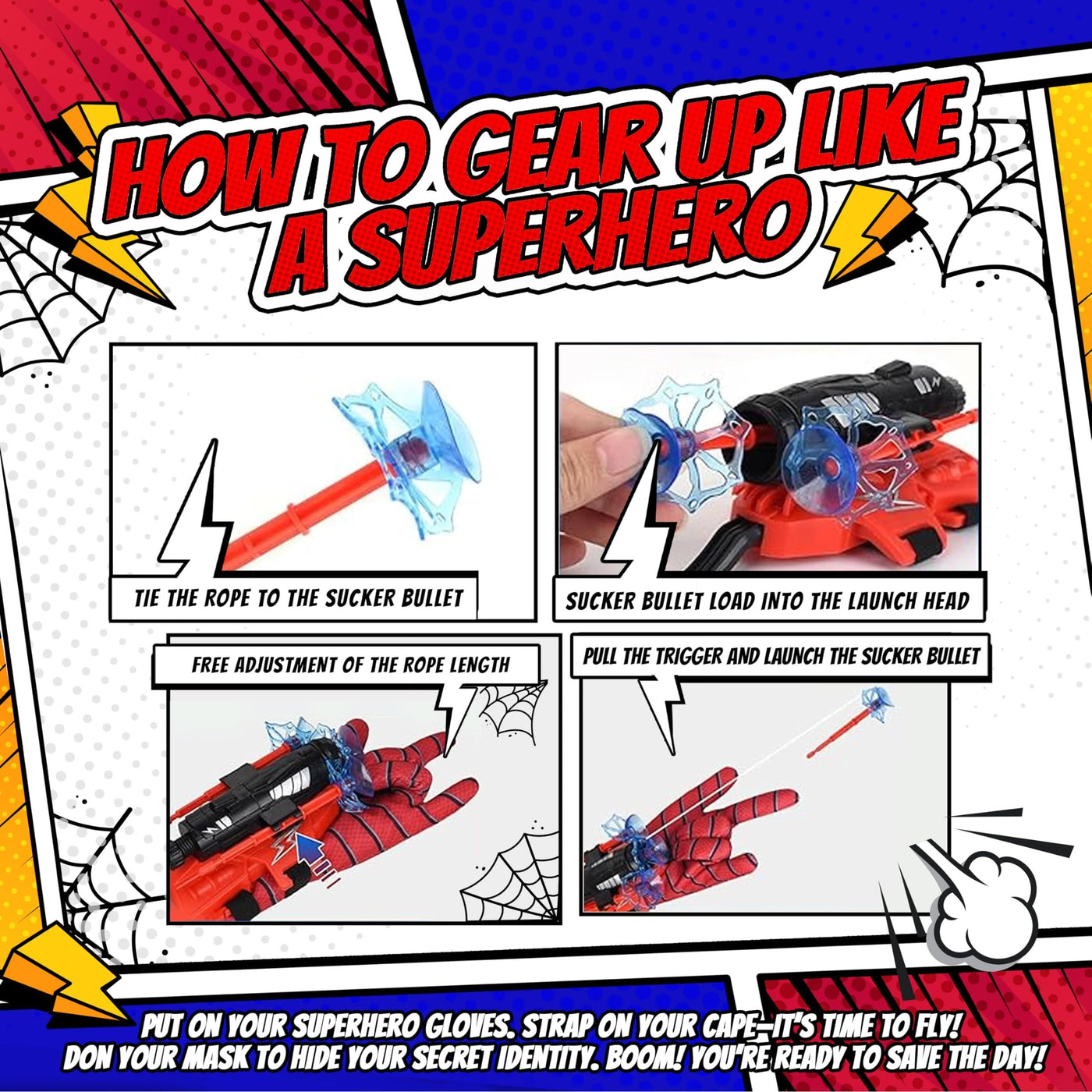 Superhero Web-Slinging Toy Set – 7-in-1 Superhero Set Includes 2 Web Shooters, 2 Hero Masks, 2 Gloves, and 1 Cape – Ideal for Indoor and Outdoor Costume Role-Playing, Imaginative Play for Kids Ages 3+ Sale