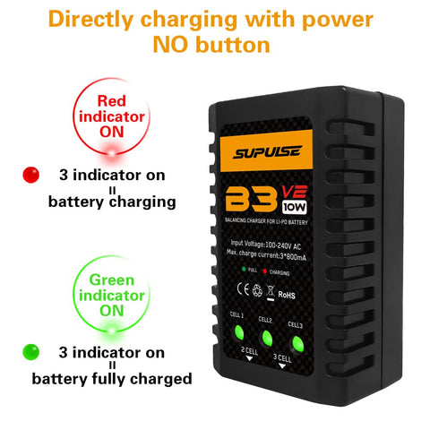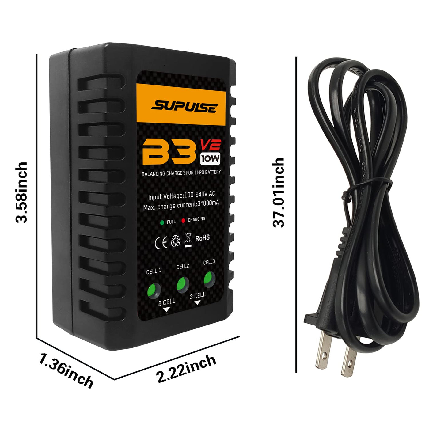 SUPULSE LiPo Battery Charger 2S-3S RC Balance Charger AC 7.4-11.1V 10W Upgrade Version Compact Lipo Charger for XHR Plug Battery(B3V2) Sale