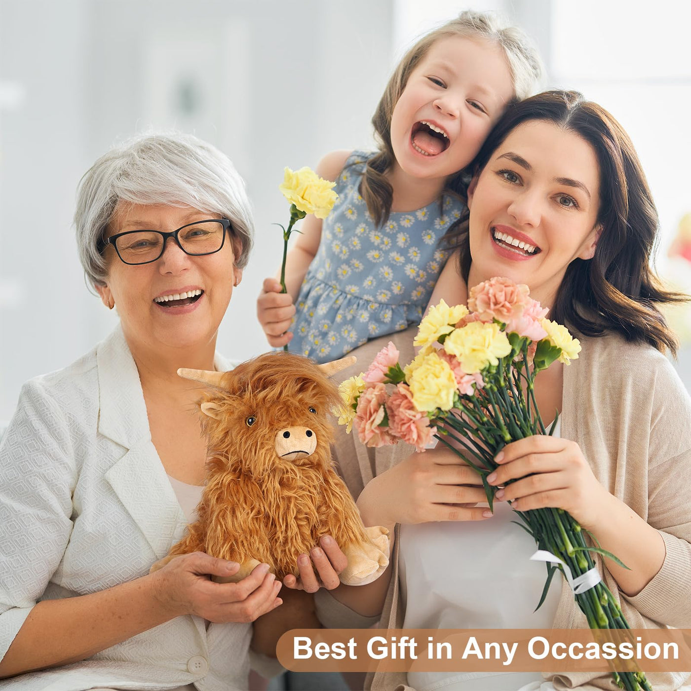 - Highland Cow Gifts: Gift a heatable stuffed animals for kids, show your love! This heating pad microwavable animal is a perfect stuffed highland cow gifts for cow lovers, comfort gifts for women, get well soon gifts for kids & teens, and a stress relief gifts for women & men