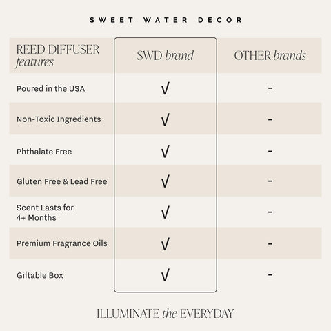- REED DIFFUSER SET INCLUDES - Our scented reed diffusers for home includes a 3.5 fl oz bottle with 8 rattan reed diffuser sticks. This reed diffuser set is beautifully packaged in a ready-to-gift box. It measures 10” high when assembled. Diffuser oil color may vary. Our reed diffusers are proudly made in Pittsburgh, PA.