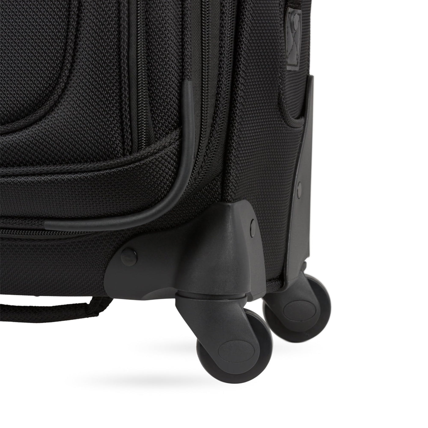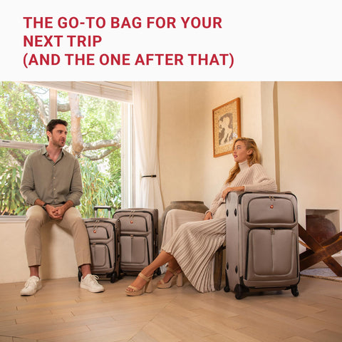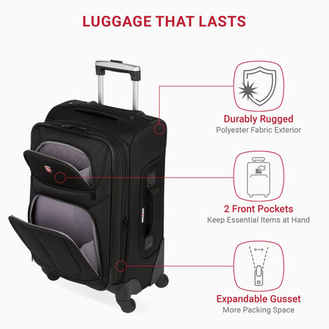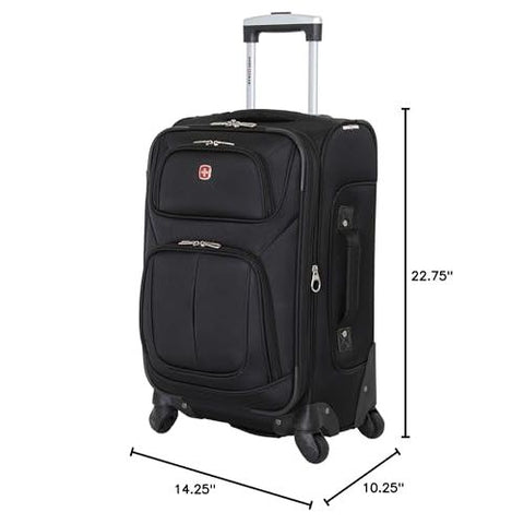 Every inch counts when it comes to fitting last minute gifts into your luggage. The Swissgear Sion Expandable Spinner Luggage Collection – containing a 21" carry-on, 25" and 29" luggage – expands to give you an ample amount of packing space when needed. This luggage features a locking push/pull handle system and four 360-degree multi-directional spinner wheels for convenient portability. Made from a durable, scuff-resistant polyester fabric, its interior is fully lined and features adjustable luggage tie-down straps for securing garments in place, a removable zippered wet bag, a large mesh lid pocket, and a packing pocket for holding small items and accessories. With the convenience of two front panel pockets, a built-in ID tag, and padded top and side handles, this ergonomically expandable luggage was designed with comfort, function, and strength in mind.