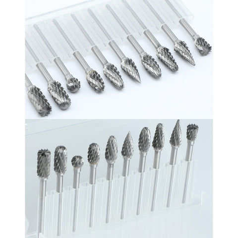 - The 10pcs double cut tungsten carbide burr bits set compatible with Dremel metal grinding bits, compatible with Hardell Milwaukee DeWALT angle or straight air or electric die grinder or drill.