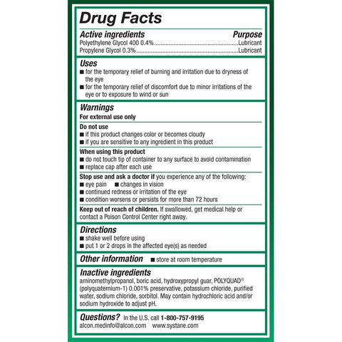Details: Systane Ultra Lubricant Eye Drops are clinically proven to deliver extended protection and high-performance relief from your dry eye symptoms. This Ultra formula provides you with the extended relief that you need. These lubricant eye drops have been clinically proven to reduce both the signs and symptoms of dry eye, quickly. Providing immediate, long-lasting moisture and protection Systane Lubricant Eye Drops offer the relief you need to get through your day. You no longer have to suffer through burning and irritation due to your dry eyes, get temporary relief with these lubricant eye drops. Available in multiple size bottles to keep your eyes feeling moist and refreshed during your day. The Systane Family of Products is the #1 Doctor Recommended brand of artificial tears for dry eye symptom relief. Don’t let dry eyes ruin your day, Systane provides temporary relief from your symptoms.