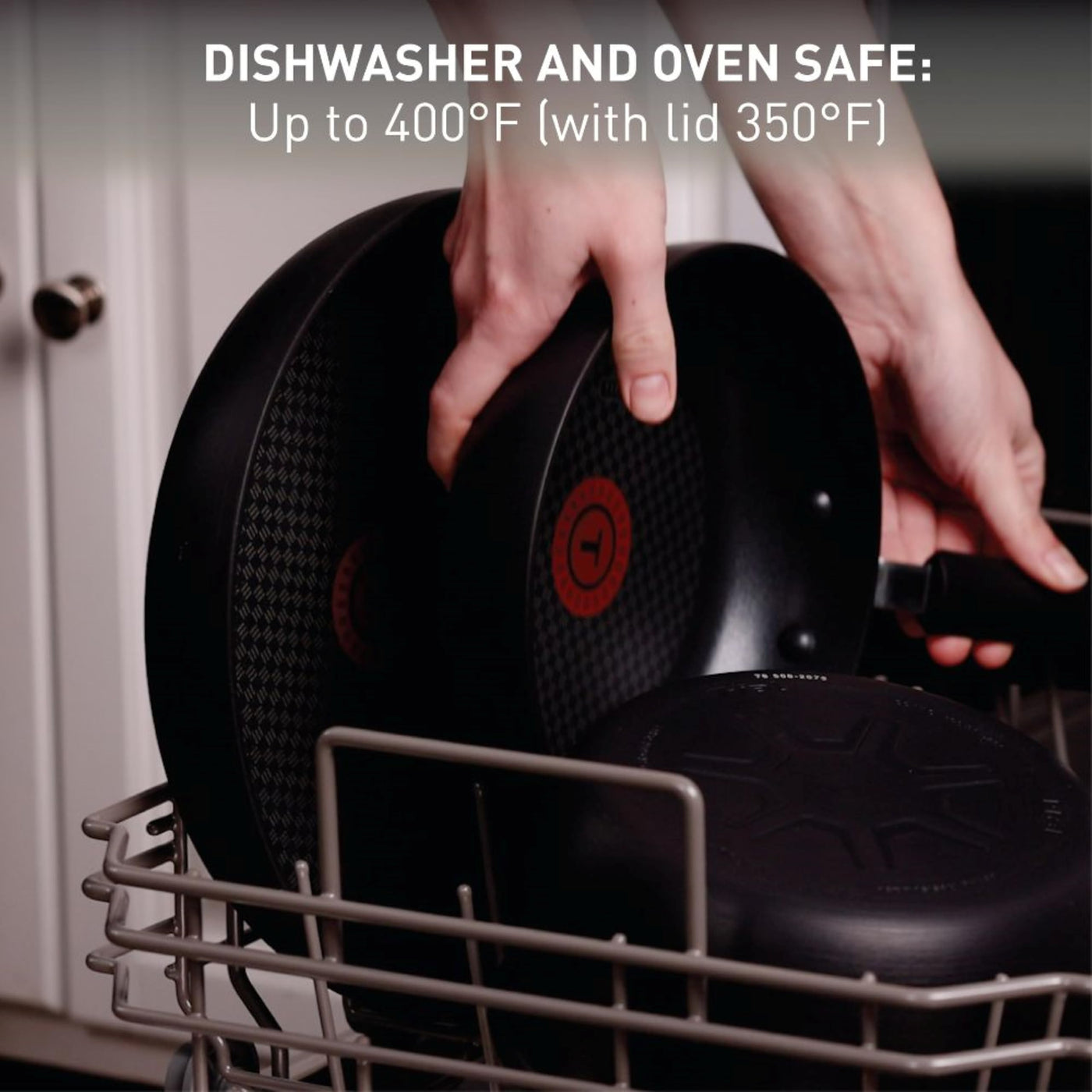 Details: "Weekday dinners, laid-back brunch, holiday entertaining—prepared for life's culinary adventures with T-fal ultimate hard anodized toxin-free nonstick cookware. With a rugged hard anodized aluminum construction, this cookware also features T-fal heat mastery system, a three-ingredient recipe for perfectly delicious cooking results every time—superior and longer-lasting non-stick coating, an anti-warping, even heat base, and patented Thermo-Spot technology. Retains perfect heat and offers supreme resistance to corrosion, scratching, and other damage for go-to reliability every day of the week. Even more, T-fal makes the important step of preheating practically foolproof. The Thermo-Spot heat indicator features a ring around the center that turns solid red to indicate when pans are properly preheated, which promotes evenly cooked food and helps seal in the natural juices and flavor of meat, poultry, fish, and other favorites. For easier cooking, the cookware titanium reinforced nonstick interior helps prevent frustrating, wasteful, stuck-to-the-bottom scenarios. Oven safe and dishwasher safe, T-fal ultimate hard anodized nonstick cookware offers multi-purpose versatility with its wide range of pots and pans—fry, brown, sauté, steam, slow cook, and more. With a frypan, non-stick pots and pans set, T-fal equips your kitchen at home for easy cooking.