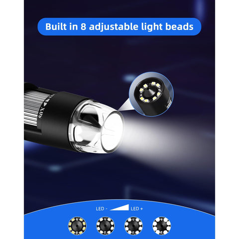 - 【8 LED light sources】: No additional lighting required, microscope comes with bright natural light, adjustable brightness, and can be used even in dark conditions