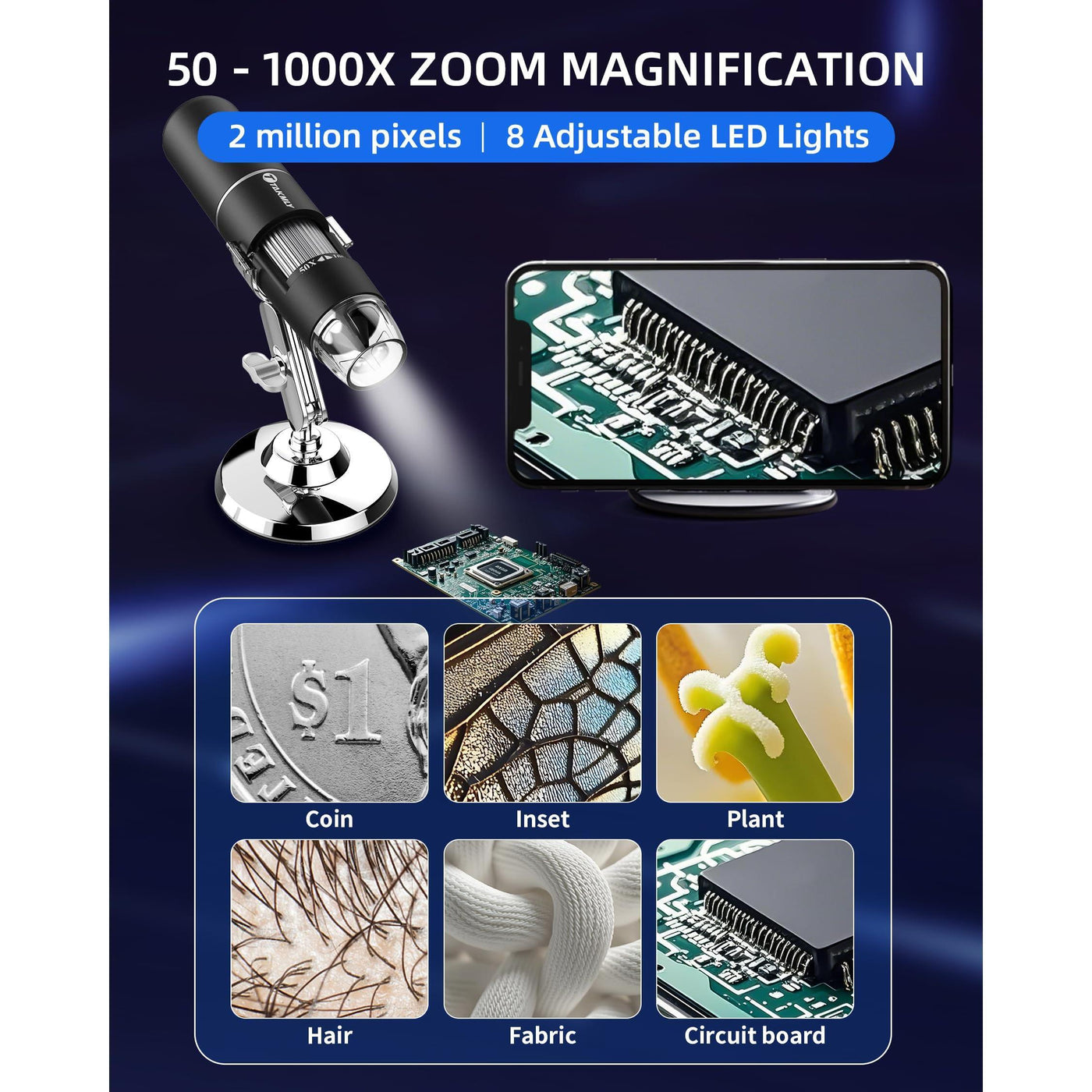 - 【What You Get】: 1x microscope, 1x USB cable, 1x stand, 1x base, 1x user manual, our 24-hour professional after-sales service