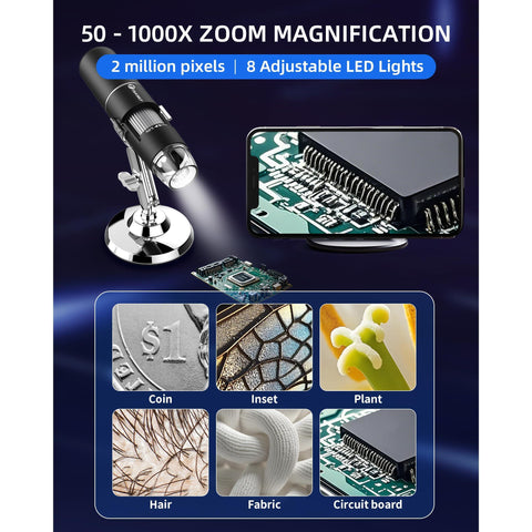 - 【A Funny Tool】: This electronic microscope is more of a fixed focus digital magnifying glass with light, not a traditional microscope, Not suitable for professional serious biologists! This is definitely a very interesting microscope for kids, parents, adults, teachers, students, children, collectors, testers, electronics' repair folks, and inquisitive folks who are interested in exploring skin hair scalp trichomes and the microscopic world